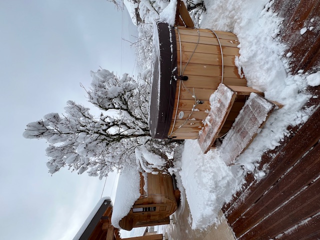 Le bain nordique Storvatt, conçu en bois massif, vous enveloppe d’une chaleur douce, idéale après une randonnée, une journée de ski ou simplement pour savourer l’instant présent. Le sauna, quant à lui, offre une chaleur sèche bienfaisante qui purifie le corps et apaise l’esprit.